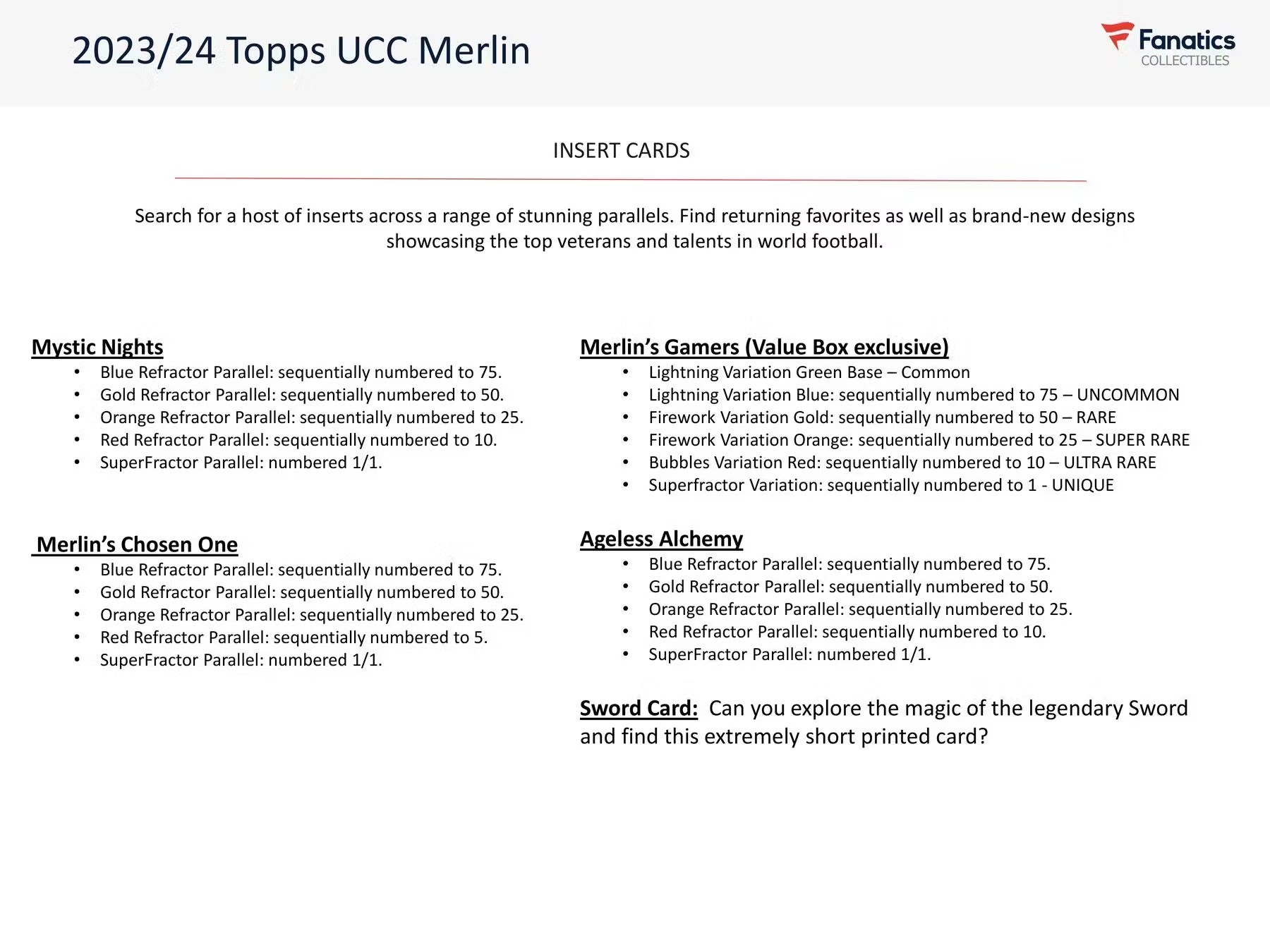Topps is excited to present the spellbinding new release of 2023/24 Topps Merlin UEFA Club Competitions! This enchanting chrome card collection features the biggest stars from UEFA's Champions League, Europa League and Europa Conference League.