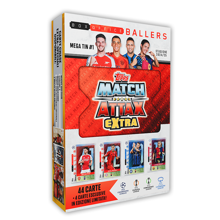 Match Attax Extra 2025 takes you into extra collecting time with 399 new cards to collect, featuring spectacular new designs and categories such as Squad Updates, Manager Career, Defensive Rock, UCL Knockout Masters, Midfield Shield, Hot Prospects, Man of the Match Heritage plus THE GOAT mega chase Chrome card. It also features more of the incredible UCWL players across the complete collection, Chrome X cards, Black Edge cards and Gold Edge cards plus the all-new Pro-View exclusive edition original and signature style cards. Look out for Player worn relics (inside lucky Mega Tins only), Autograph Jumbo Relic cards and genuine autograph and dual autograph cards across the collection. Plus we are giving you the chance to design your own Match Attax card where the winning design will be turned into a real card in next season's collection - get designing now!