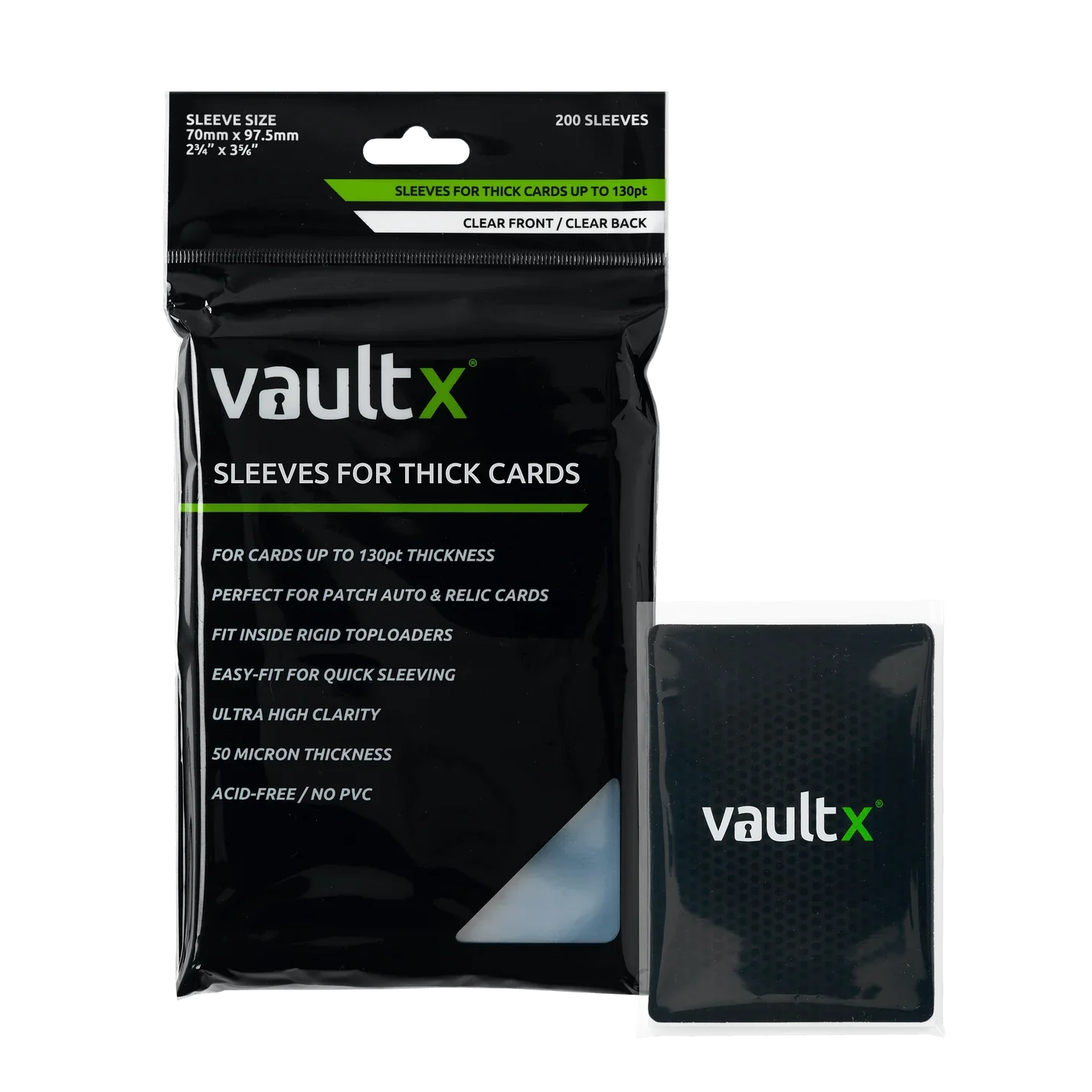 PERFECT DESIGN - Vault X Card Sleeves for Thick Cards are designed to fit sports cards up to 130pt thickness and are perfectly compatible with Vault X toploaders.