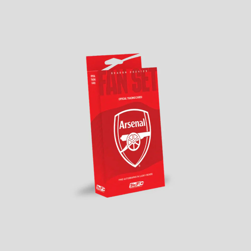 Topps is delighted to introduce the return of the 2024-25 Topps Arsenal Fan Set. Guaranteeing you an exciting rip featuring 28 stars from the red side of north London, both present-day heroes and fan-favourite legends. Collect all first-team players with the Base cards and keep your eyes peeled for the incredible chase cards in this season’s set – including a returning gem in Golden Future, as well as the true 1/1 chase card: Golden Treasure. Marvel at those etched-in-stone legends in the Monolith insert and get that pitch-side feeling with Fanatic Fans. Get ready to discover which two, beautifully designed parallels are waiting for you, with 1 sequentially numbered parallel and 1 unnumbered Electro parallel per box. Providing the big chase in this season’s Fan Set are the super-rare autograph cards, featuring an impressive range of past and present Arsenal icons.