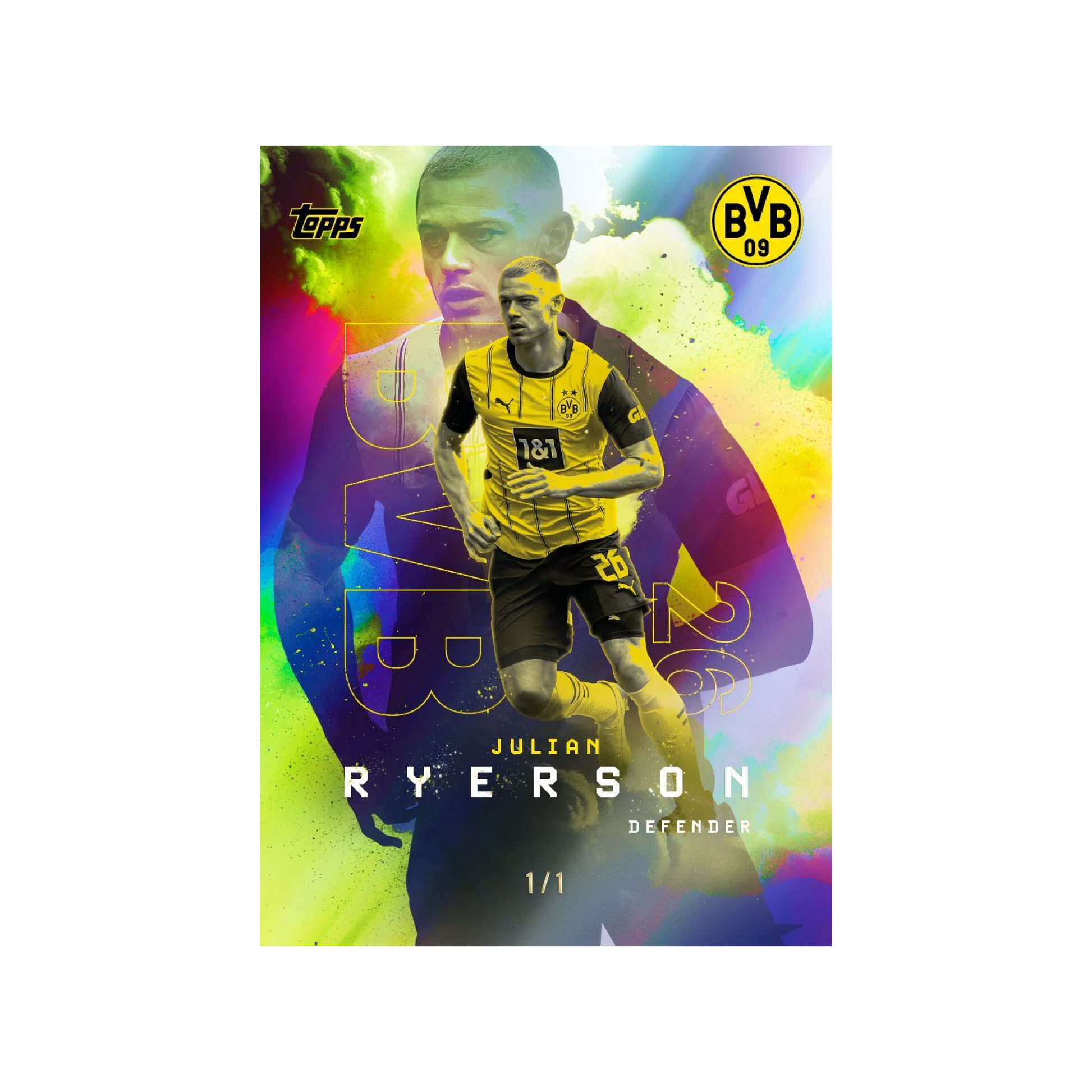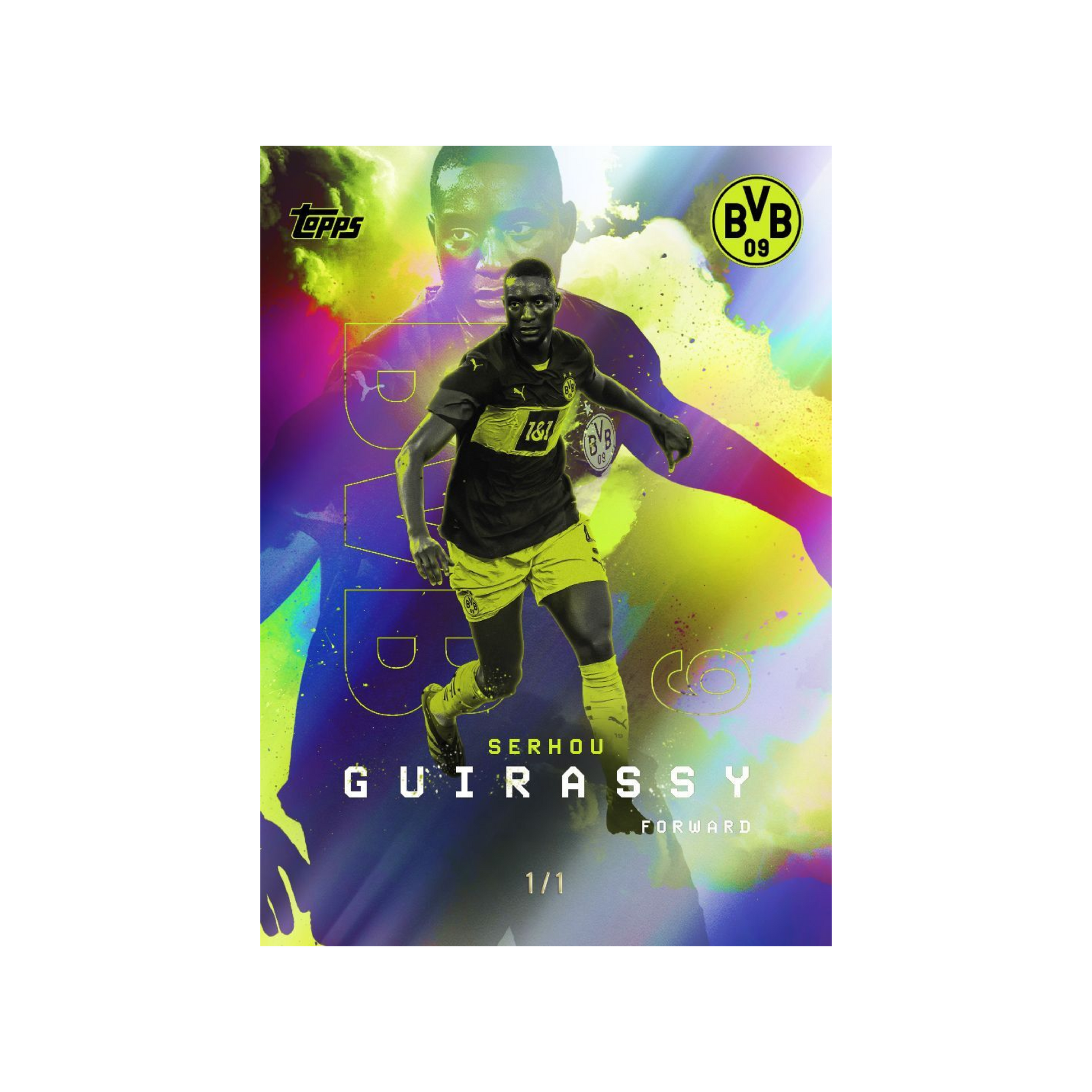 The exciting new Case Hits and 1/1 cards in this set are the ultimate hit for Borussia Dortmund fans around the world. Start with Pathway and take a journey through time as these cards commemorate some incredible international careers, and add some creative genius to your set with the spectacular Rainbow Flick cards. The superb Black & Yellow Fusion cards pay homage to the club's most identifiable players.