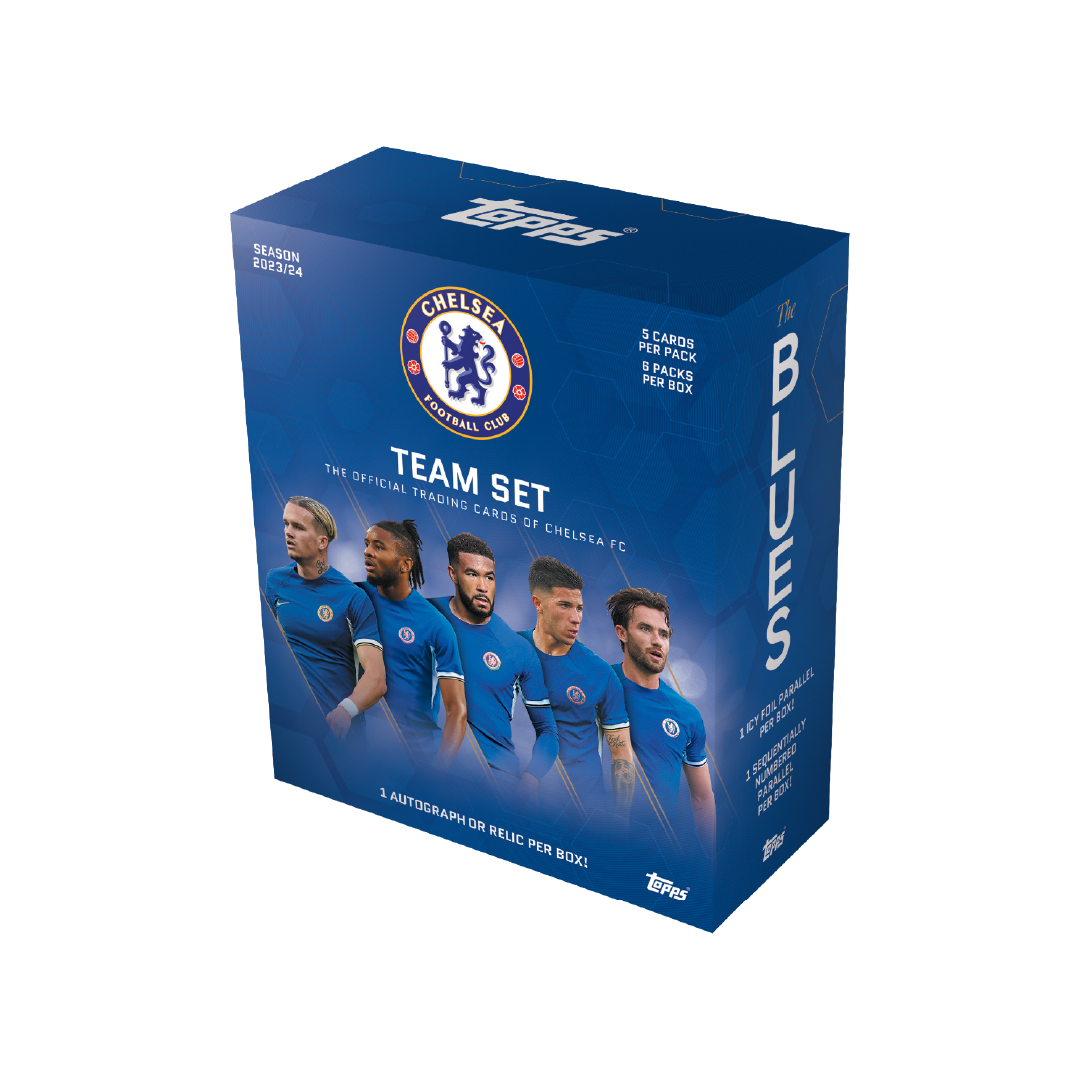 The blue and proud part of west London returns for the 2023/24 season, with Topps pleased to announce the release of the Chelsea Team Set2023/24!