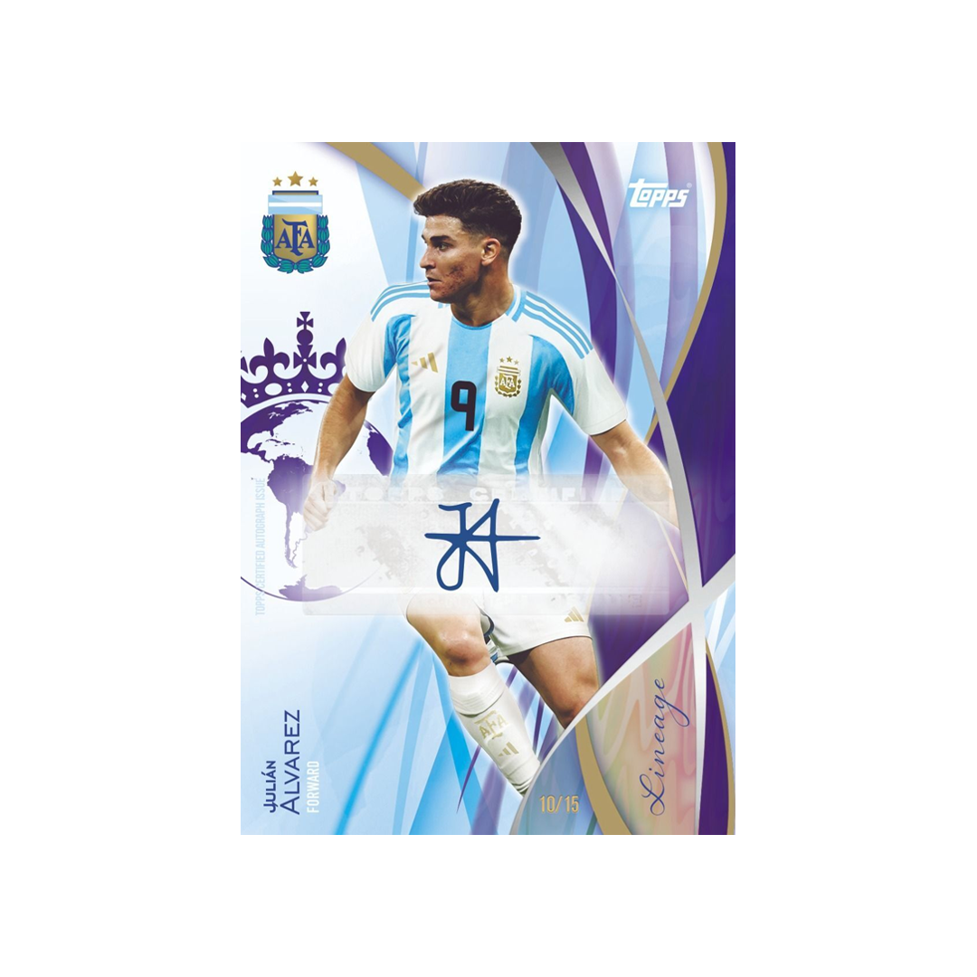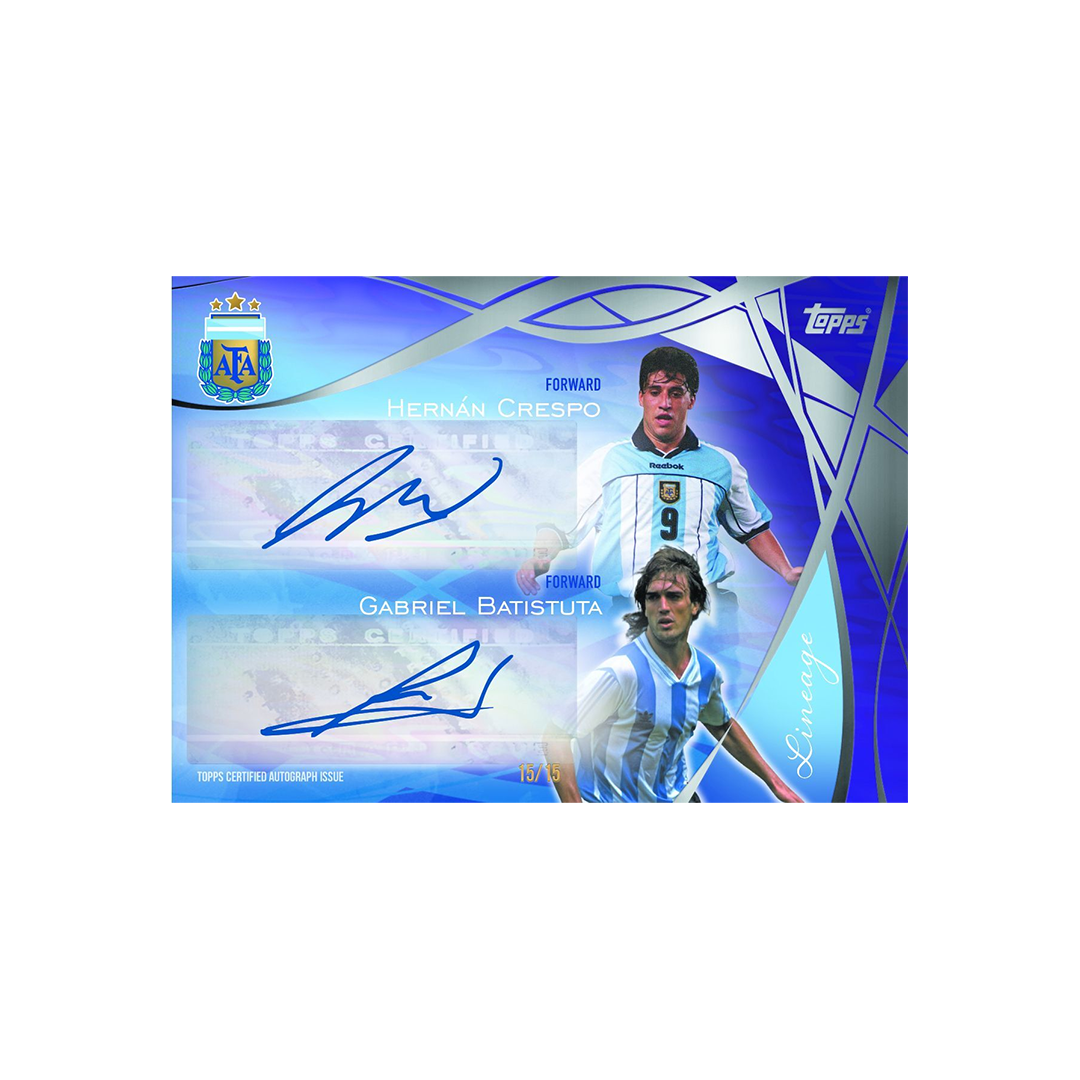 An exciting range of sought-after Autograph cards featuring past, present, and future Argentine ballers in the three base designs, as well as a brand-new dual auto design as the Argentum Autographs pair premium partnerships.